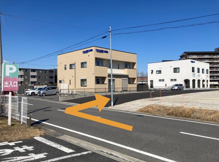 矢印の通りに進んでいただくと駐車場がございます。